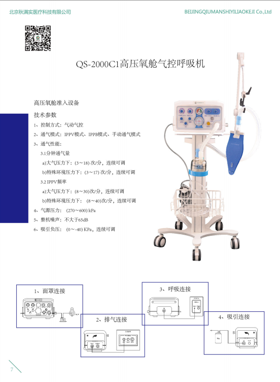北京秋滿實(shí) QS-2000C1 高壓氧艙氣控呼吸機(jī)